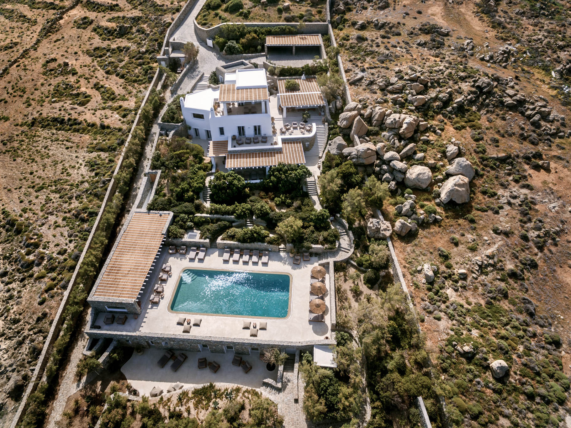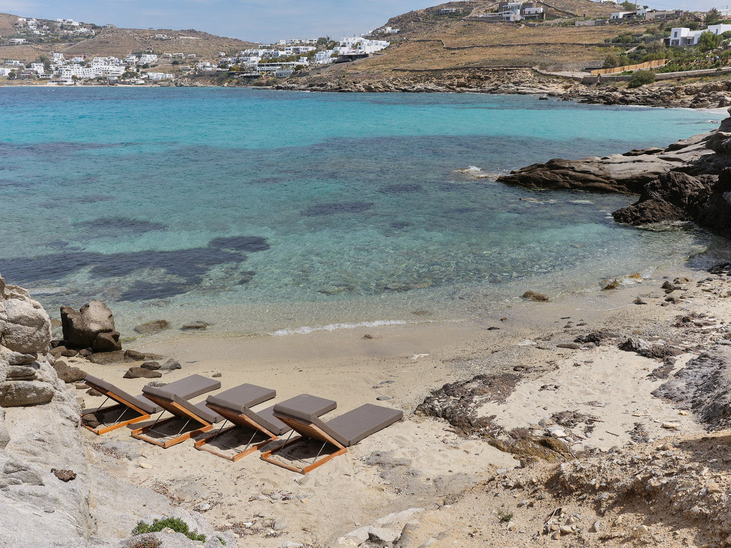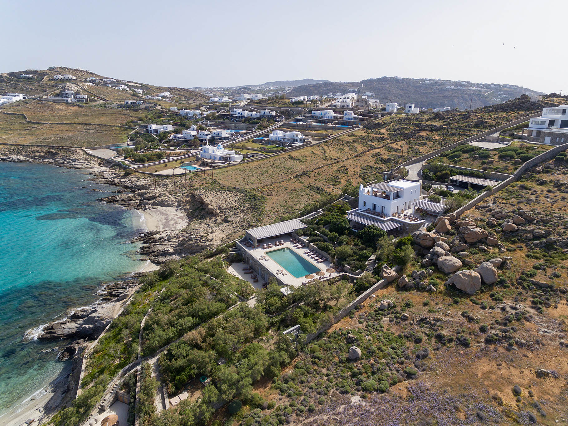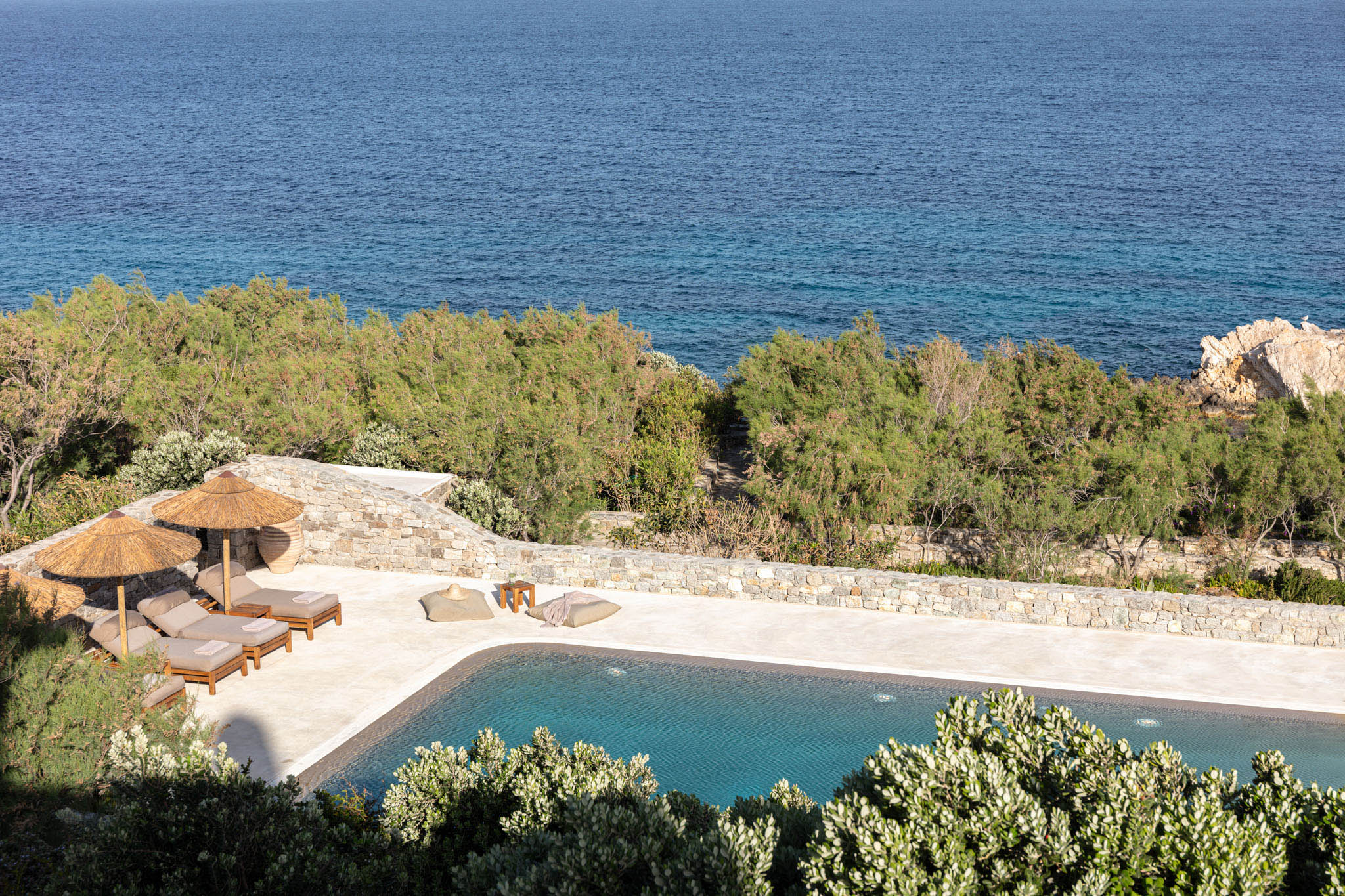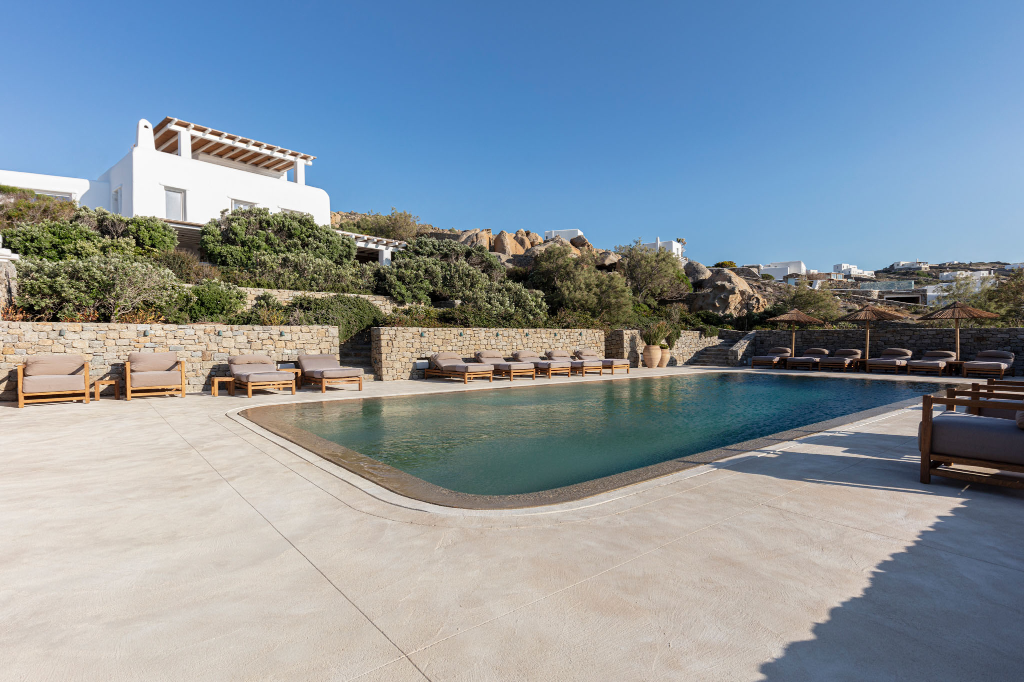 On the island of Mykonos, a slow-living sanctuary of unparalleled magnificence and effortless serenity has at last opened its doors. Located in the exclusive and tranquil pocket of Aleomandra, this lavish seven-bedroom property occupies a privileged perch shared by no other accommodation on the island. Expect a captivating sensorial journey to commence upon arrival: A sound bath of the Aegean lapping onto the pristine shores, accompanied by soothing gusts of salty air. Suspended above a semi-private sandy beach, the dreamy hillside haven has been exquisitely renovated with a spectacular array of prestigious amenities and thoughtful touches to inspire an unforgettable barefoot-luxury stay for up to 14 guests. While the property’s meticulous redesign is anchored by the classic characteristics of traditional Cycladic architecture, eye-catching contemporary design accents and tech-enabled comforts appear throughout, from the breezy common areas to the intimate bedrooms and everywhere in between. Ample opportunities for relaxation abound: Seek out rejuvenation at the dedicated wellness area, which is equipped with a sumptuous hammam, massage room, and gym, or descend further down the cascading retreat to the expansive heated pool that overlooks the Mediterranean blue. Alternatively, settle into the cinema room, where movies and television shows can be projected directly onto the whitewashed walls. With four bespoke-designed kitchens on the premises, including two located al fresco, gourmands can cater their own gastronomic experience, or tap a team of culinary professionals to take advantage of the restaurant-quality chef’s kitchen. With an abundance of outdoor terraces and gardens that follow the contours of the landscape, afternoons can be spent basking in the summertime splendor and soaking up the sun’s rays. And as the day fades, the west-facing vistas present a nightly sunset spectacle that illuminates the sacred islands of Delos and Rhenia with swirls of red, pink, and orange hues. Breathe in, breathe out. All there is to do now is relax, unwind, and take in every magical moment spent at this Cycladic gem.