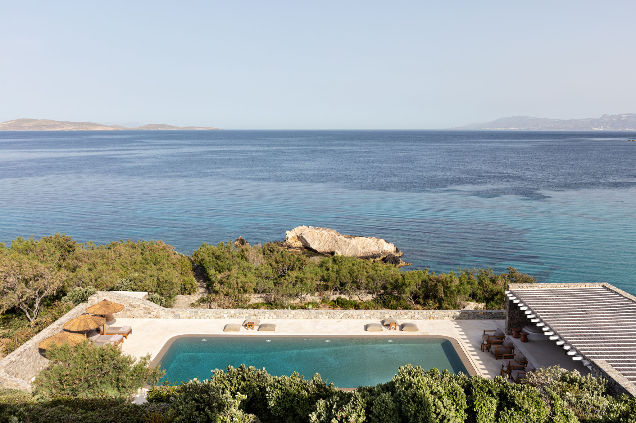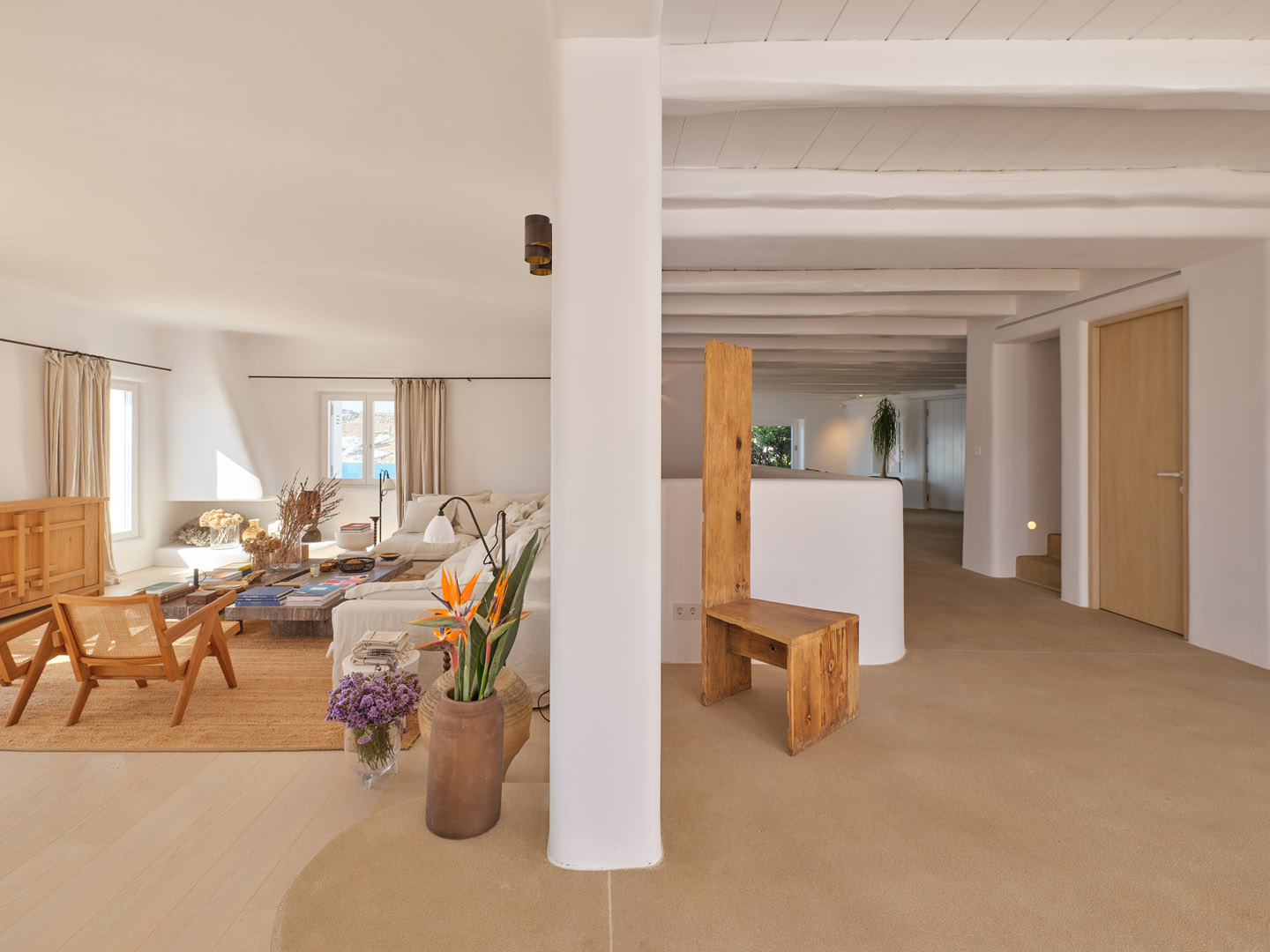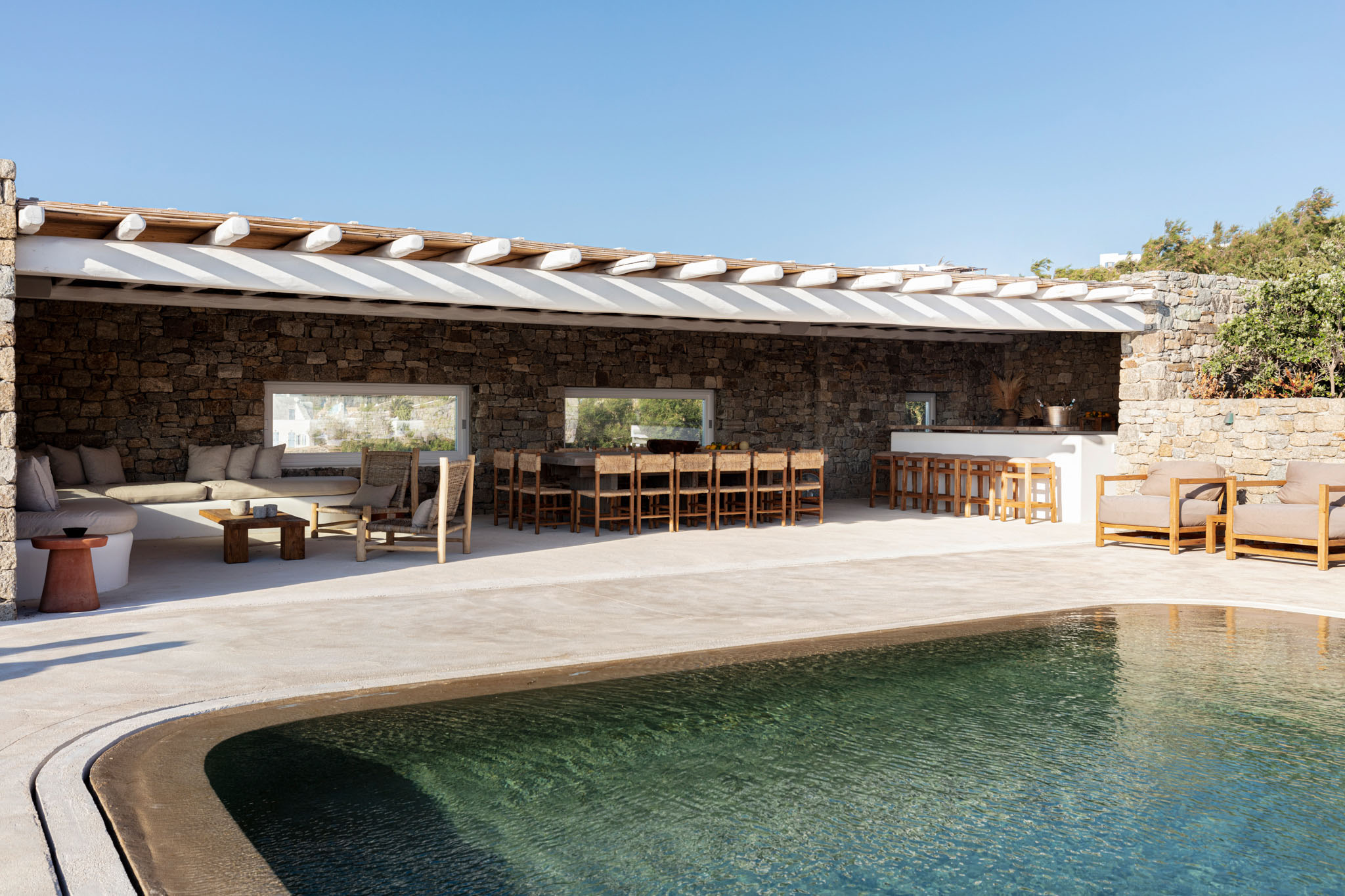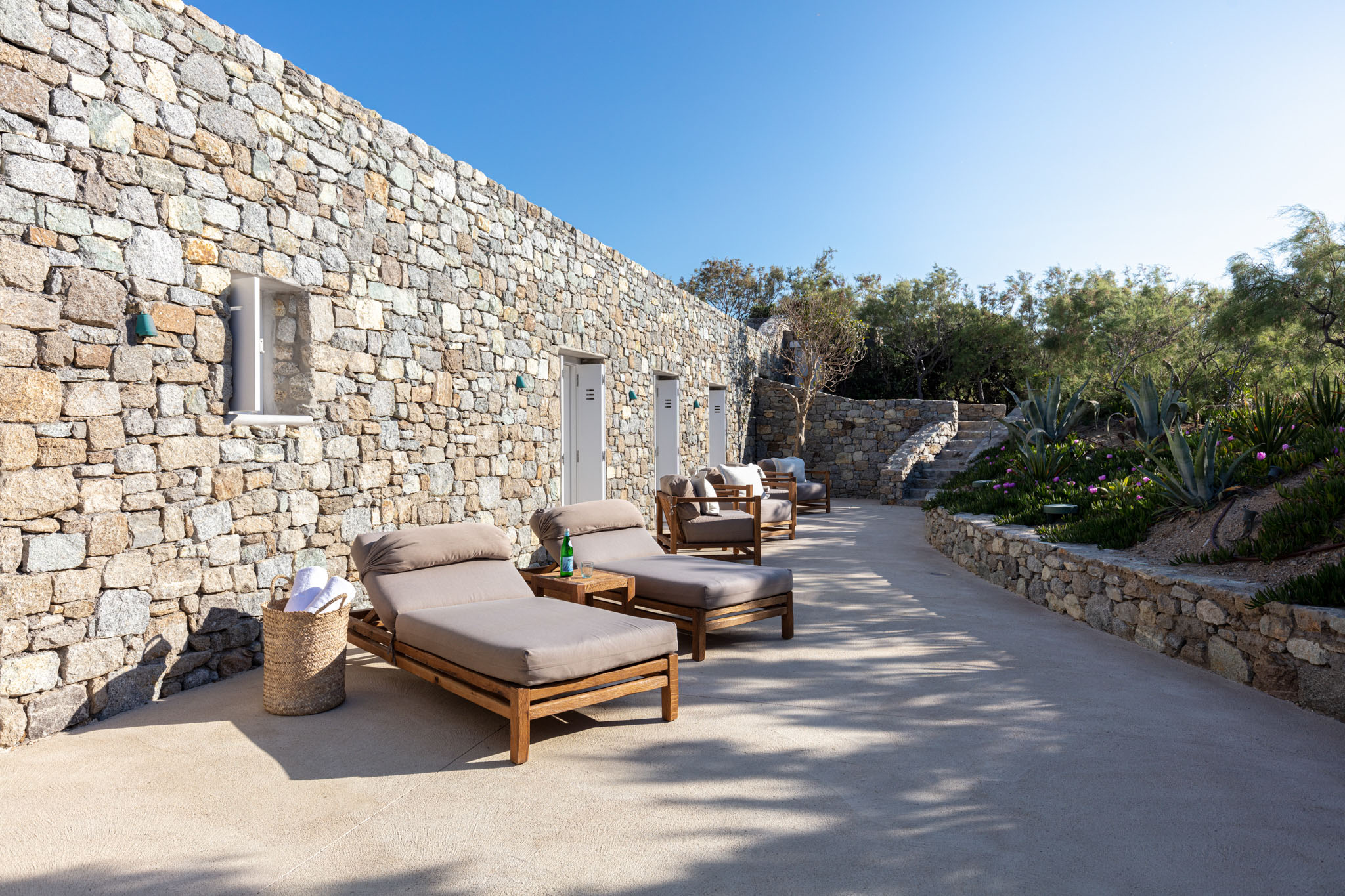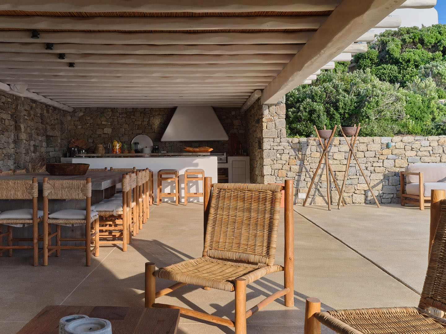 On the island of Mykonos, a slow-living sanctuary of unparalleled magnificence and effortless serenity has at last opened its doors. Located in the exclusive and tranquil pocket of Aleomandra, this lavish seven-bedroom property occupies a privileged perch shared by no other accommodation on the island. Expect a captivating sensorial journey to commence upon arrival: A sound bath of the Aegean lapping onto the pristine shores, accompanied by soothing gusts of salty air. Suspended above a semi-private sandy beach, the dreamy hillside haven has been exquisitely renovated with a spectacular array of prestigious amenities and thoughtful touches to inspire an unforgettable barefoot-luxury stay for up to 14 guests. While the property’s meticulous redesign is anchored by the classic characteristics of traditional Cycladic architecture, eye-catching contemporary design accents and tech-enabled comforts appear throughout, from the breezy common areas to the intimate bedrooms and everywhere in between. Ample opportunities for relaxation abound: Seek out rejuvenation at the dedicated wellness area, which is equipped with a sumptuous hammam, massage room, and gym, or descend further down the cascading retreat to the expansive heated pool that overlooks the Mediterranean blue. Alternatively, settle into the cinema room, where movies and television shows can be projected directly onto the whitewashed walls. With four bespoke-designed kitchens on the premises, including two located al fresco, gourmands can cater their own gastronomic experience, or tap a team of culinary professionals to take advantage of the restaurant-quality chef’s kitchen. With an abundance of outdoor terraces and gardens that follow the contours of the landscape, afternoons can be spent basking in the summertime splendor and soaking up the sun’s rays. And as the day fades, the west-facing vistas present a nightly sunset spectacle that illuminates the sacred islands of Delos and Rhenia with swirls of red, pink, and orange hues. Breathe in, breathe out. All there is to do now is relax, unwind, and take in every magical moment spent at this Cycladic gem.