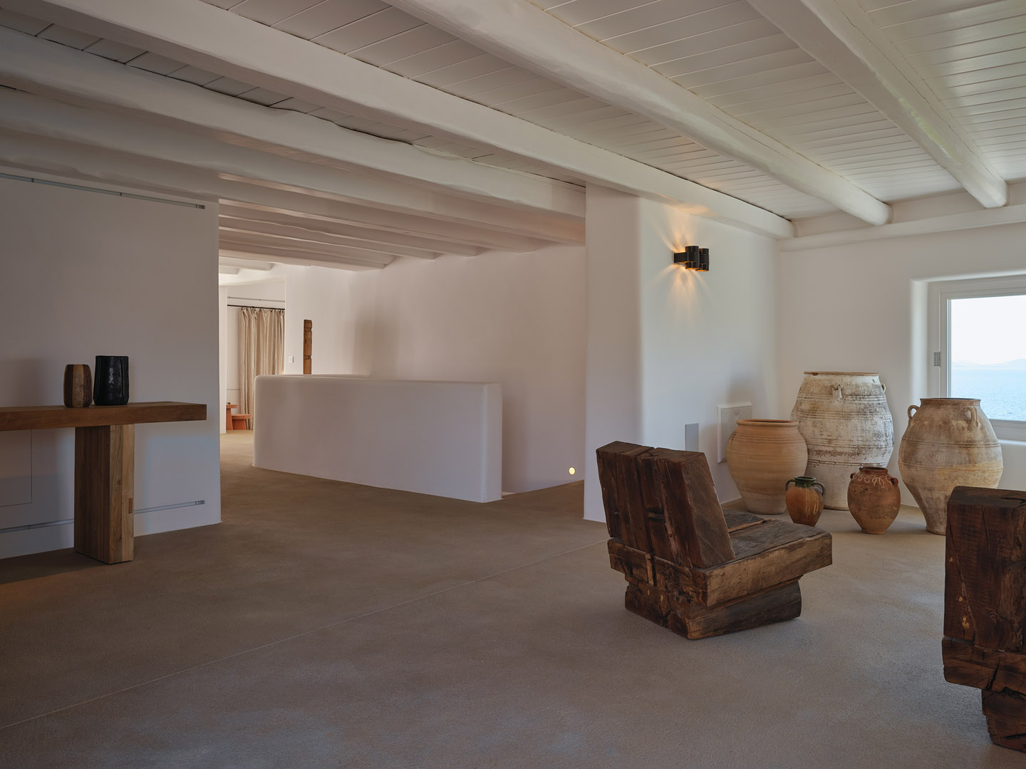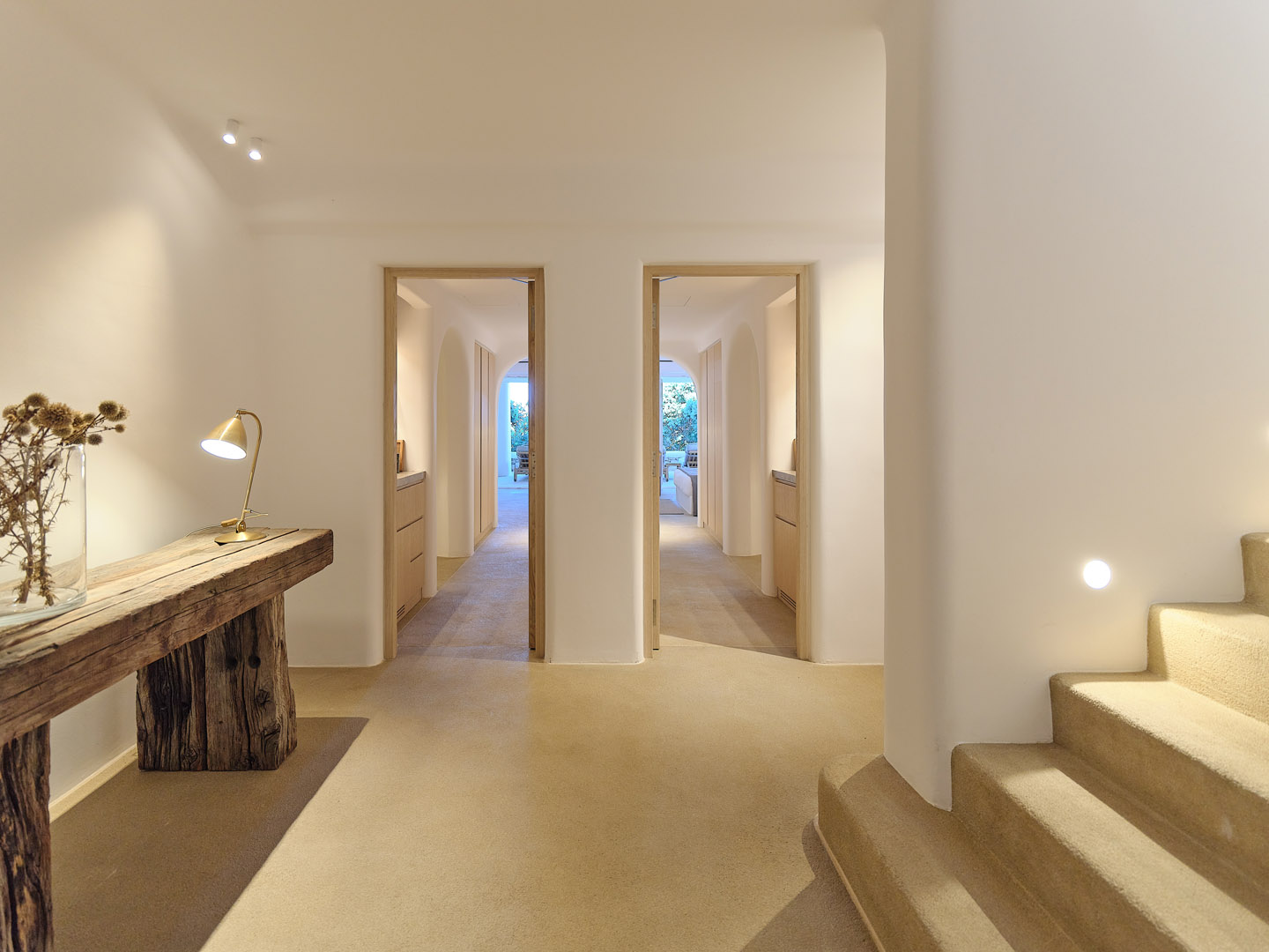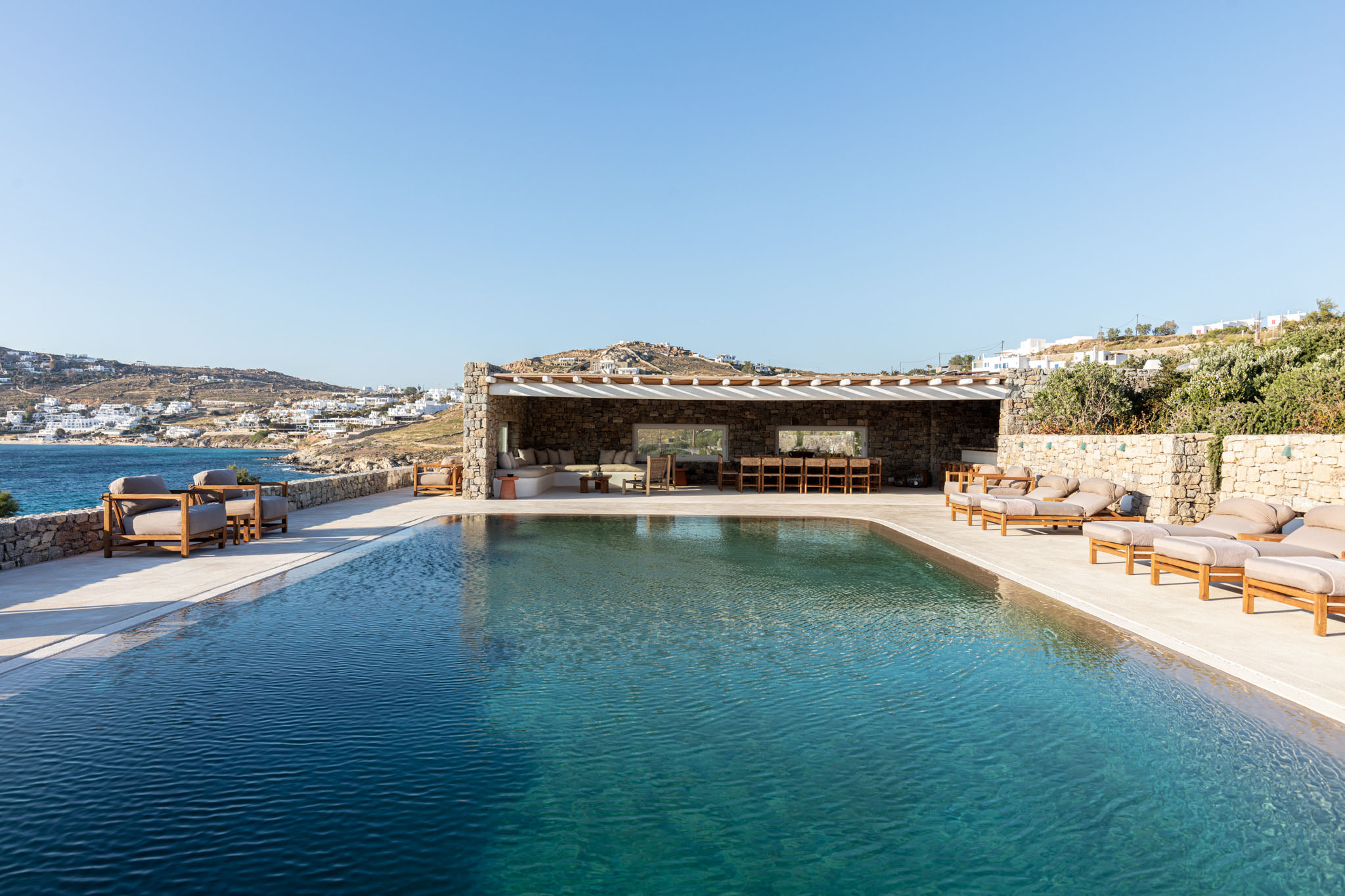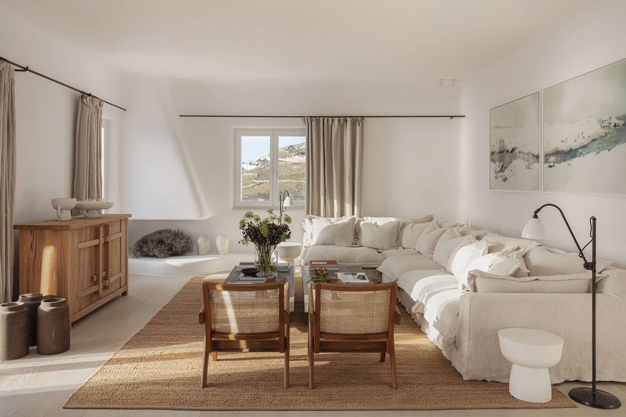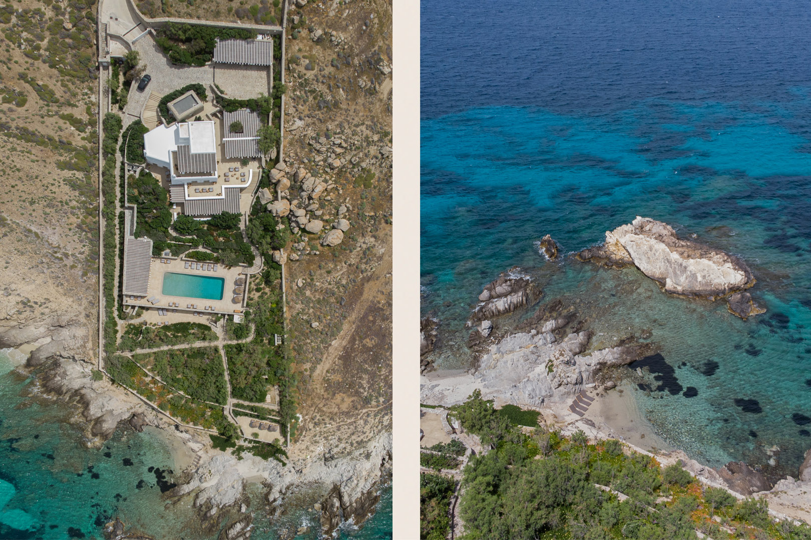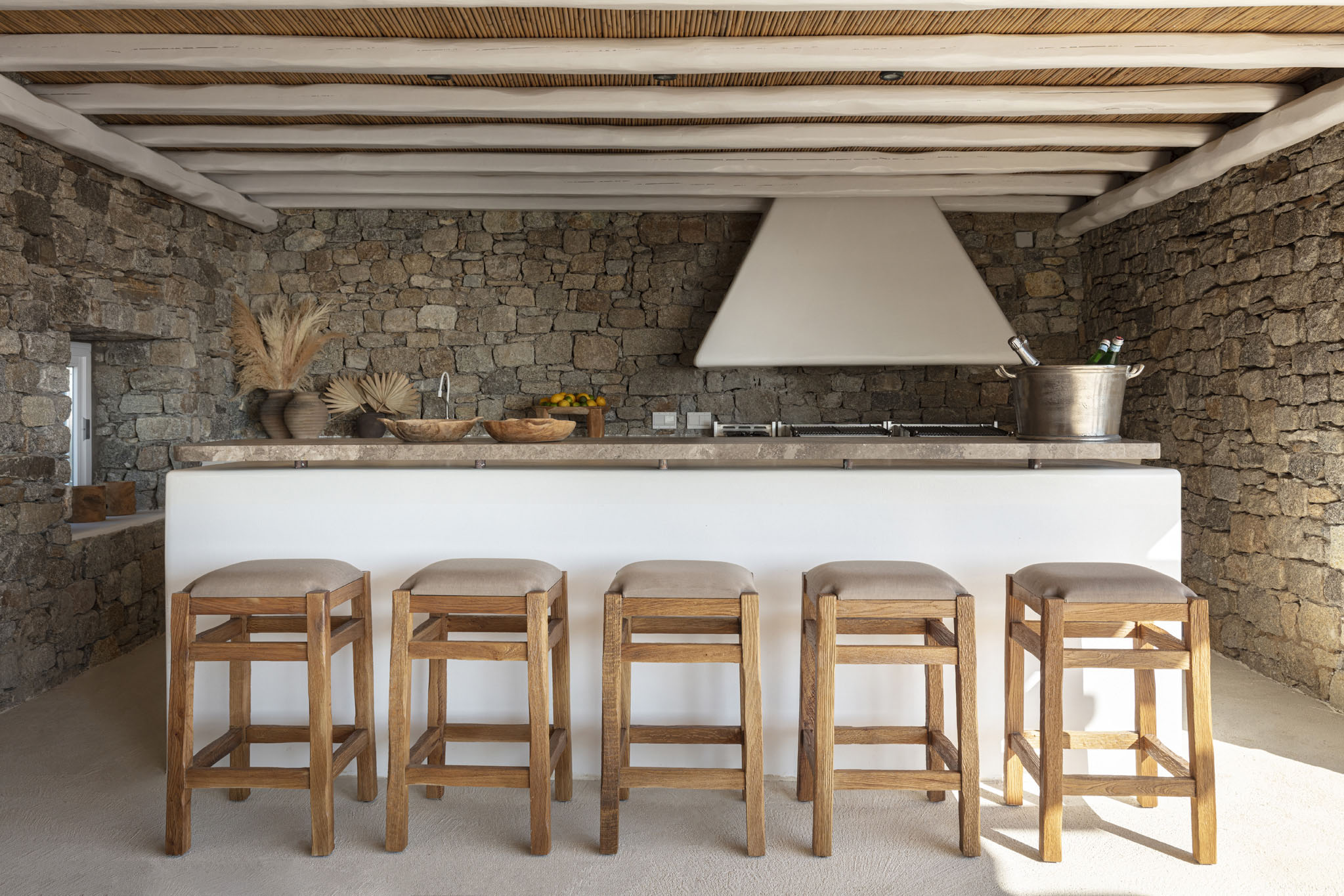 On the island of Mykonos, a slow-living sanctuary of unparalleled magnificence and effortless serenity has at last opened its doors. Located in the exclusive and tranquil pocket of Aleomandra, this lavish seven-bedroom property occupies a privileged perch shared by no other accommodation on the island. Expect a captivating sensorial journey to commence upon arrival: A sound bath of the Aegean lapping onto the pristine shores, accompanied by soothing gusts of salty air. Suspended above a semi-private sandy beach, the dreamy hillside haven has been exquisitely renovated with a spectacular array of prestigious amenities and thoughtful touches to inspire an unforgettable barefoot-luxury stay for up to 14 guests. While the property’s meticulous redesign is anchored by the classic characteristics of traditional Cycladic architecture, eye-catching contemporary design accents and tech-enabled comforts appear throughout, from the breezy common areas to the intimate bedrooms and everywhere in between. Ample opportunities for relaxation abound: Seek out rejuvenation at the dedicated wellness area, which is equipped with a sumptuous hammam, massage room, and gym, or descend further down the cascading retreat to the expansive heated pool that overlooks the Mediterranean blue. Alternatively, settle into the cinema room, where movies and television shows can be projected directly onto the whitewashed walls. With four bespoke-designed kitchens on the premises, including two located al fresco, gourmands can cater their own gastronomic experience, or tap a team of culinary professionals to take advantage of the restaurant-quality chef’s kitchen. With an abundance of outdoor terraces and gardens that follow the contours of the landscape, afternoons can be spent basking in the summertime splendor and soaking up the sun’s rays. And as the day fades, the west-facing vistas present a nightly sunset spectacle that illuminates the sacred islands of Delos and Rhenia with swirls of red, pink, and orange hues. Breathe in, breathe out. All there is to do now is relax, unwind, and take in every magical moment spent at this Cycladic gem.