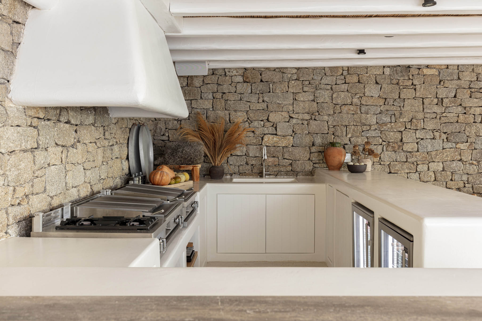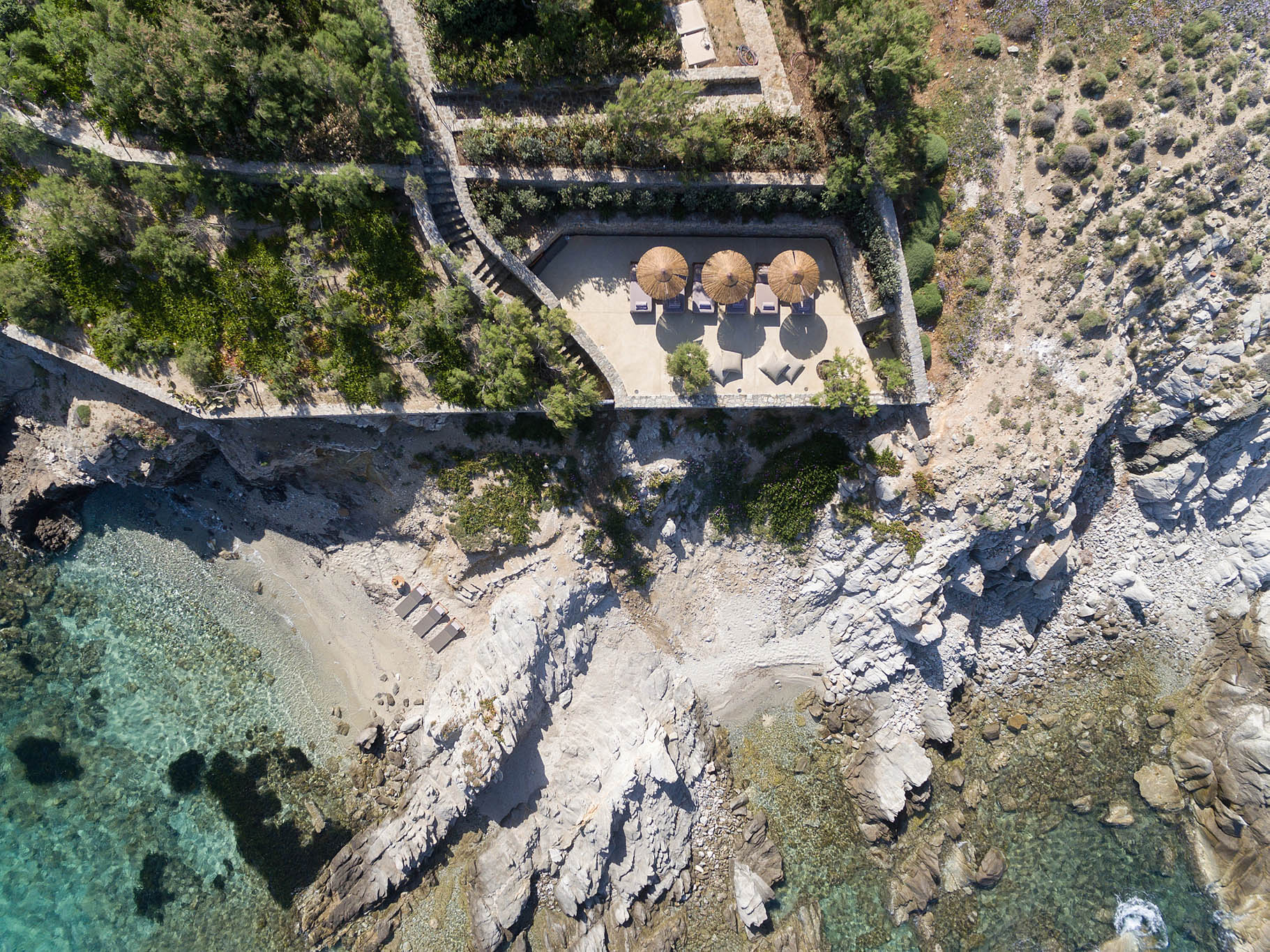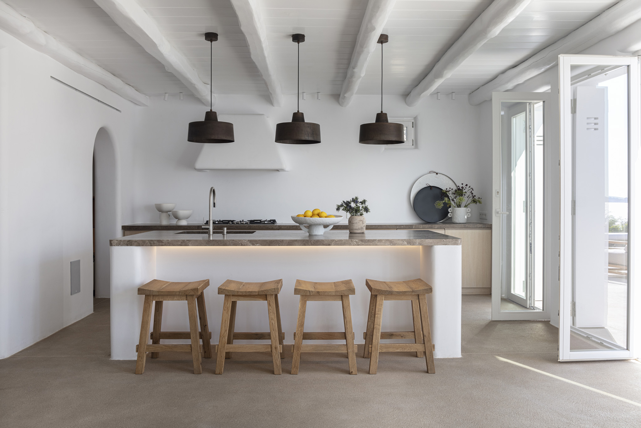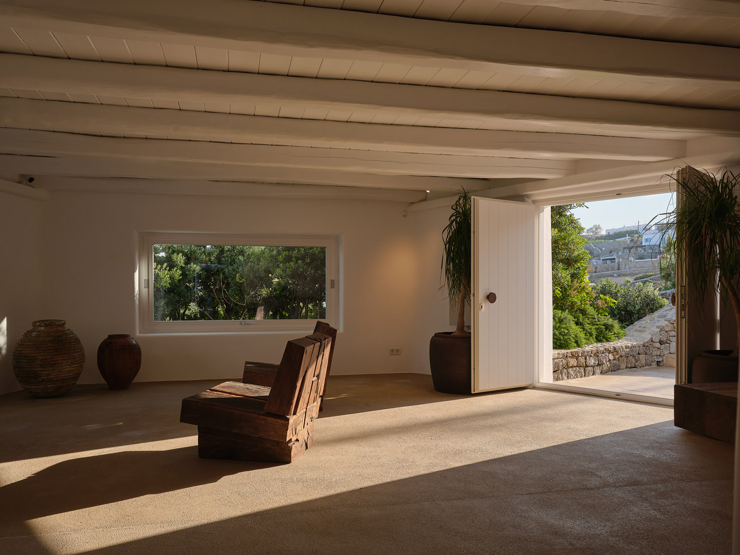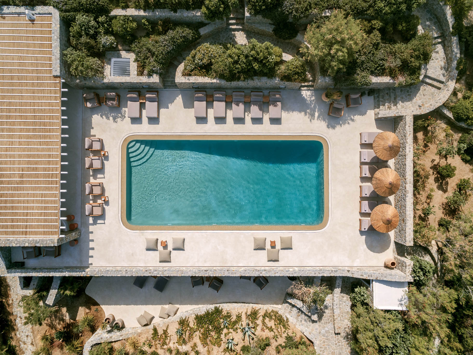 On the island of Mykonos, a slow-living sanctuary of unparalleled magnificence and effortless serenity has at last opened its doors. Located in the exclusive and tranquil pocket of Aleomandra, this lavish seven-bedroom property occupies a privileged perch shared by no other accommodation on the island. Expect a captivating sensorial journey to commence upon arrival: A sound bath of the Aegean lapping onto the pristine shores, accompanied by soothing gusts of salty air. Suspended above a semi-private sandy beach, the dreamy hillside haven has been exquisitely renovated with a spectacular array of prestigious amenities and thoughtful touches to inspire an unforgettable barefoot-luxury stay for up to 14 guests. While the property’s meticulous redesign is anchored by the classic characteristics of traditional Cycladic architecture, eye-catching contemporary design accents and tech-enabled comforts appear throughout, from the breezy common areas to the intimate bedrooms and everywhere in between. Ample opportunities for relaxation abound: Seek out rejuvenation at the dedicated wellness area, which is equipped with a sumptuous hammam, massage room, and gym, or descend further down the cascading retreat to the expansive heated pool that overlooks the Mediterranean blue. Alternatively, settle into the cinema room, where movies and television shows can be projected directly onto the whitewashed walls. With four bespoke-designed kitchens on the premises, including two located al fresco, gourmands can cater their own gastronomic experience, or tap a team of culinary professionals to take advantage of the restaurant-quality chef’s kitchen. With an abundance of outdoor terraces and gardens that follow the contours of the landscape, afternoons can be spent basking in the summertime splendor and soaking up the sun’s rays. And as the day fades, the west-facing vistas present a nightly sunset spectacle that illuminates the sacred islands of Delos and Rhenia with swirls of red, pink, and orange hues. Breathe in, breathe out. All there is to do now is relax, unwind, and take in every magical moment spent at this Cycladic gem.