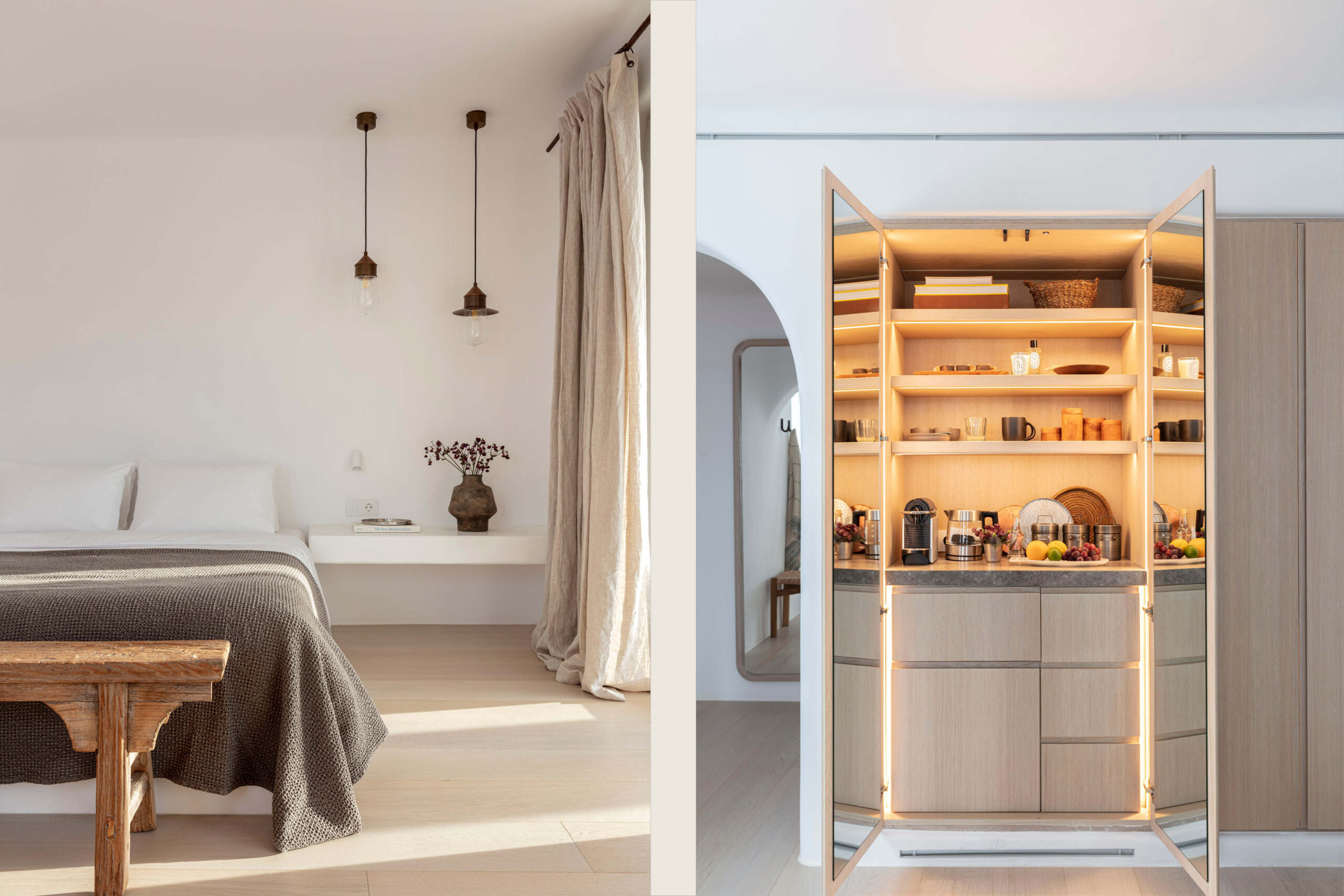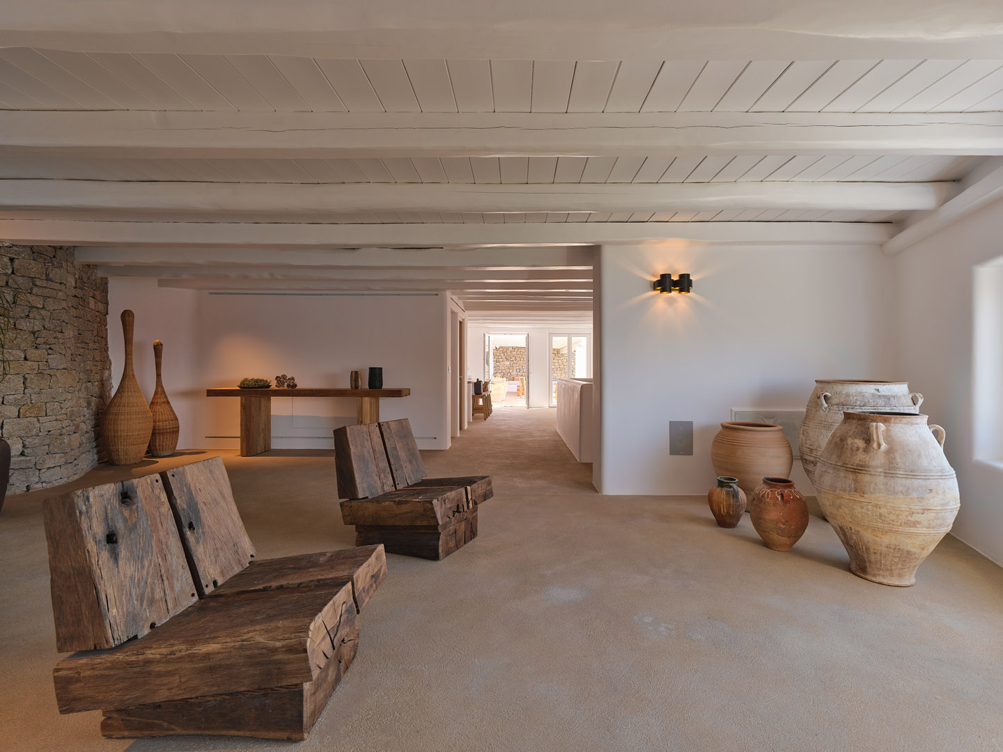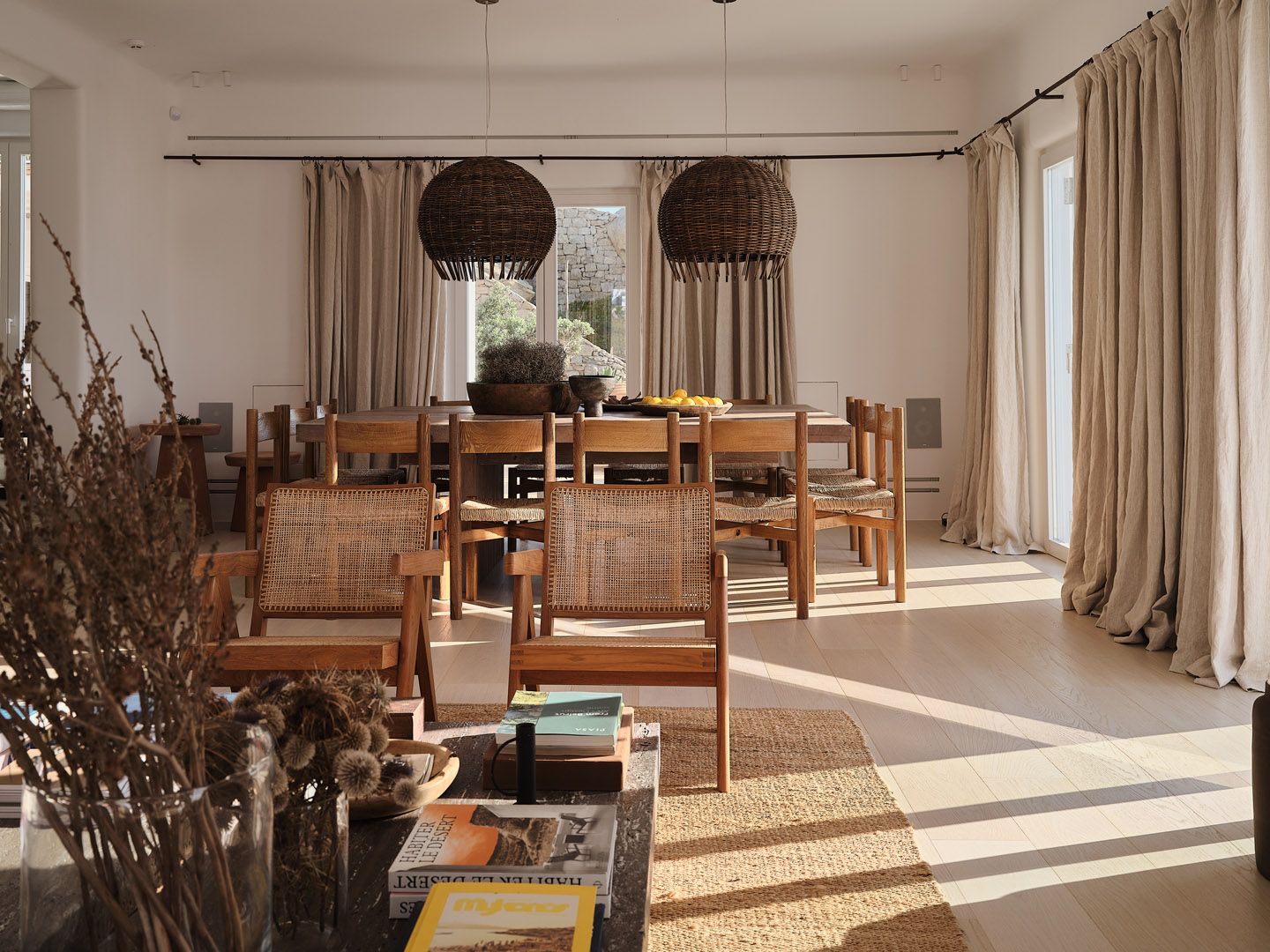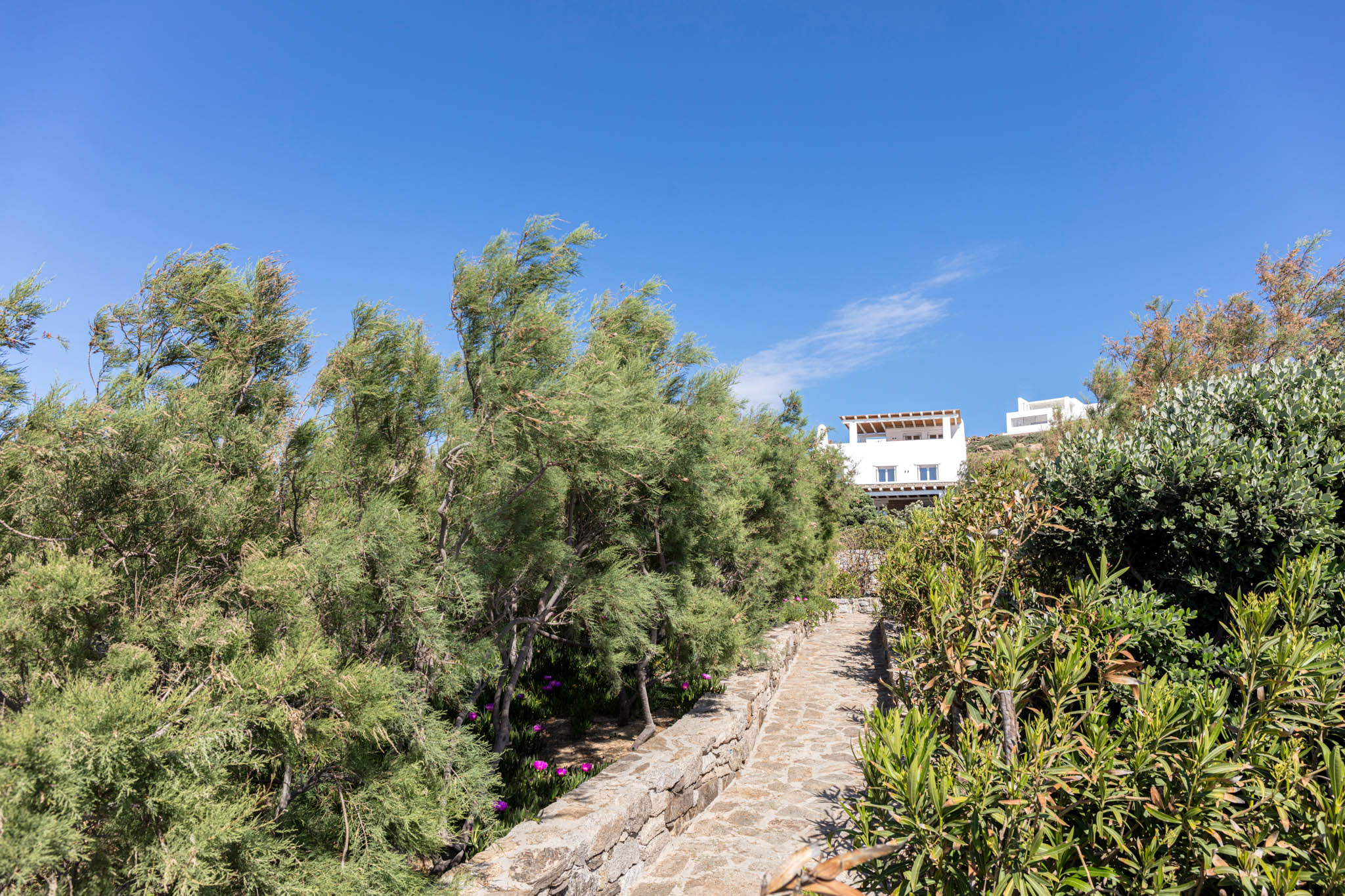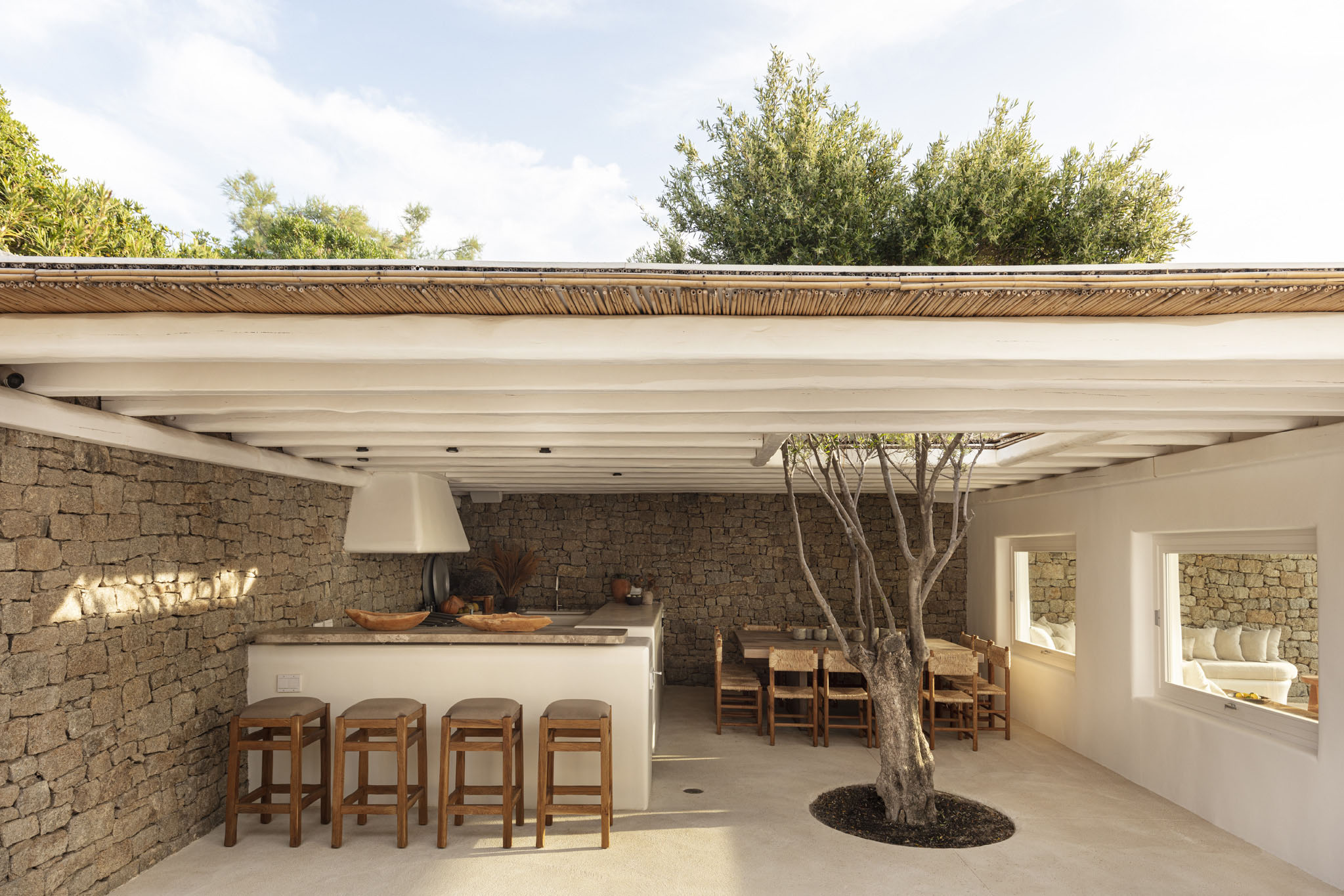 On the island of Mykonos, a slow-living sanctuary of unparalleled magnificence and effortless serenity has at last opened its doors. Located in the exclusive and tranquil pocket of Aleomandra, this lavish seven-bedroom property occupies a privileged perch shared by no other accommodation on the island. Expect a captivating sensorial journey to commence upon arrival: A sound bath of the Aegean lapping onto the pristine shores, accompanied by soothing gusts of salty air. Suspended above a semi-private sandy beach, the dreamy hillside haven has been exquisitely renovated with a spectacular array of prestigious amenities and thoughtful touches to inspire an unforgettable barefoot-luxury stay for up to 14 guests. While the property’s meticulous redesign is anchored by the classic characteristics of traditional Cycladic architecture, eye-catching contemporary design accents and tech-enabled comforts appear throughout, from the breezy common areas to the intimate bedrooms and everywhere in between. Ample opportunities for relaxation abound: Seek out rejuvenation at the dedicated wellness area, which is equipped with a sumptuous hammam, massage room, and gym, or descend further down the cascading retreat to the expansive heated pool that overlooks the Mediterranean blue. Alternatively, settle into the cinema room, where movies and television shows can be projected directly onto the whitewashed walls. With four bespoke-designed kitchens on the premises, including two located al fresco, gourmands can cater their own gastronomic experience, or tap a team of culinary professionals to take advantage of the restaurant-quality chef’s kitchen. With an abundance of outdoor terraces and gardens that follow the contours of the landscape, afternoons can be spent basking in the summertime splendor and soaking up the sun’s rays. And as the day fades, the west-facing vistas present a nightly sunset spectacle that illuminates the sacred islands of Delos and Rhenia with swirls of red, pink, and orange hues. Breathe in, breathe out. All there is to do now is relax, unwind, and take in every magical moment spent at this Cycladic gem.