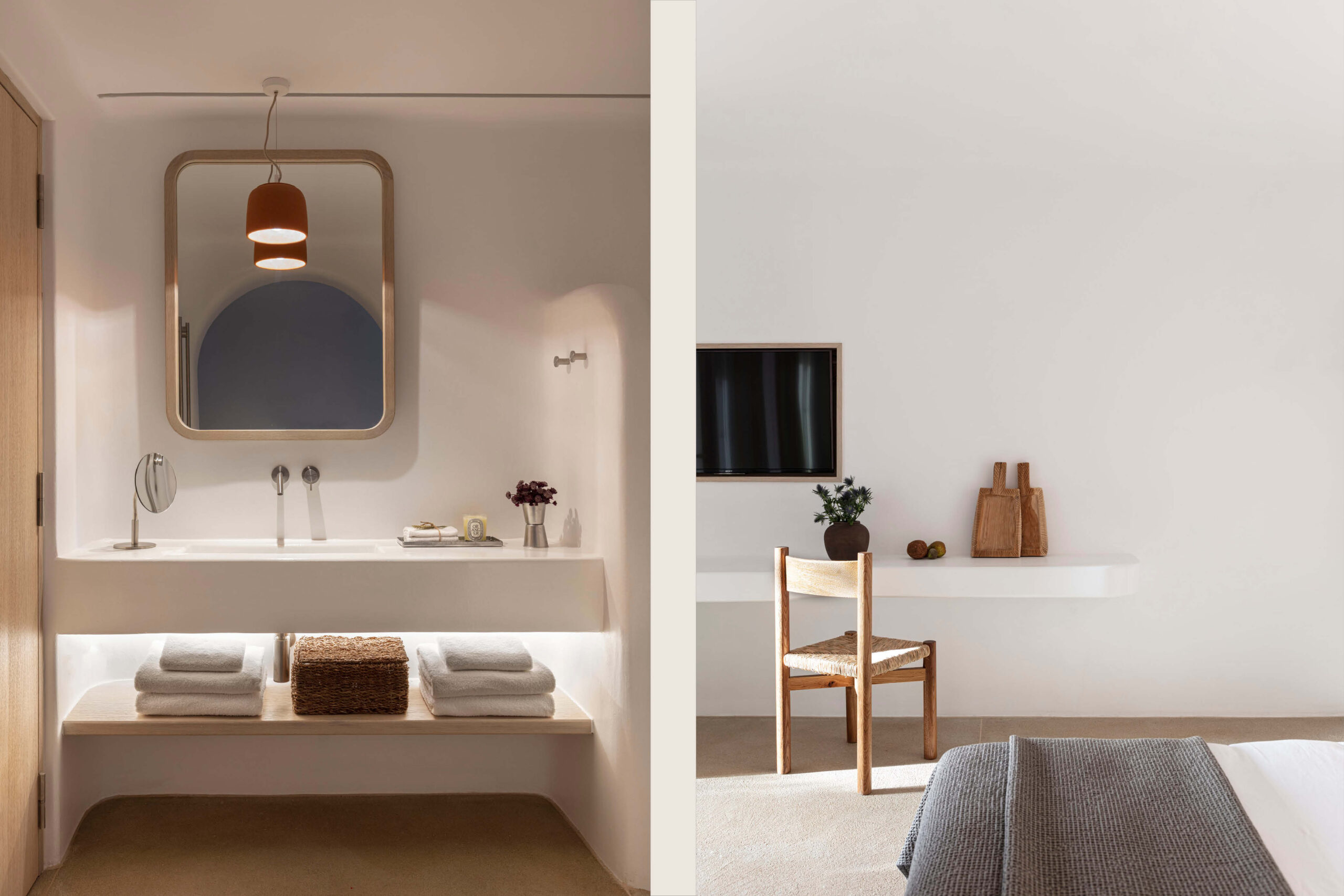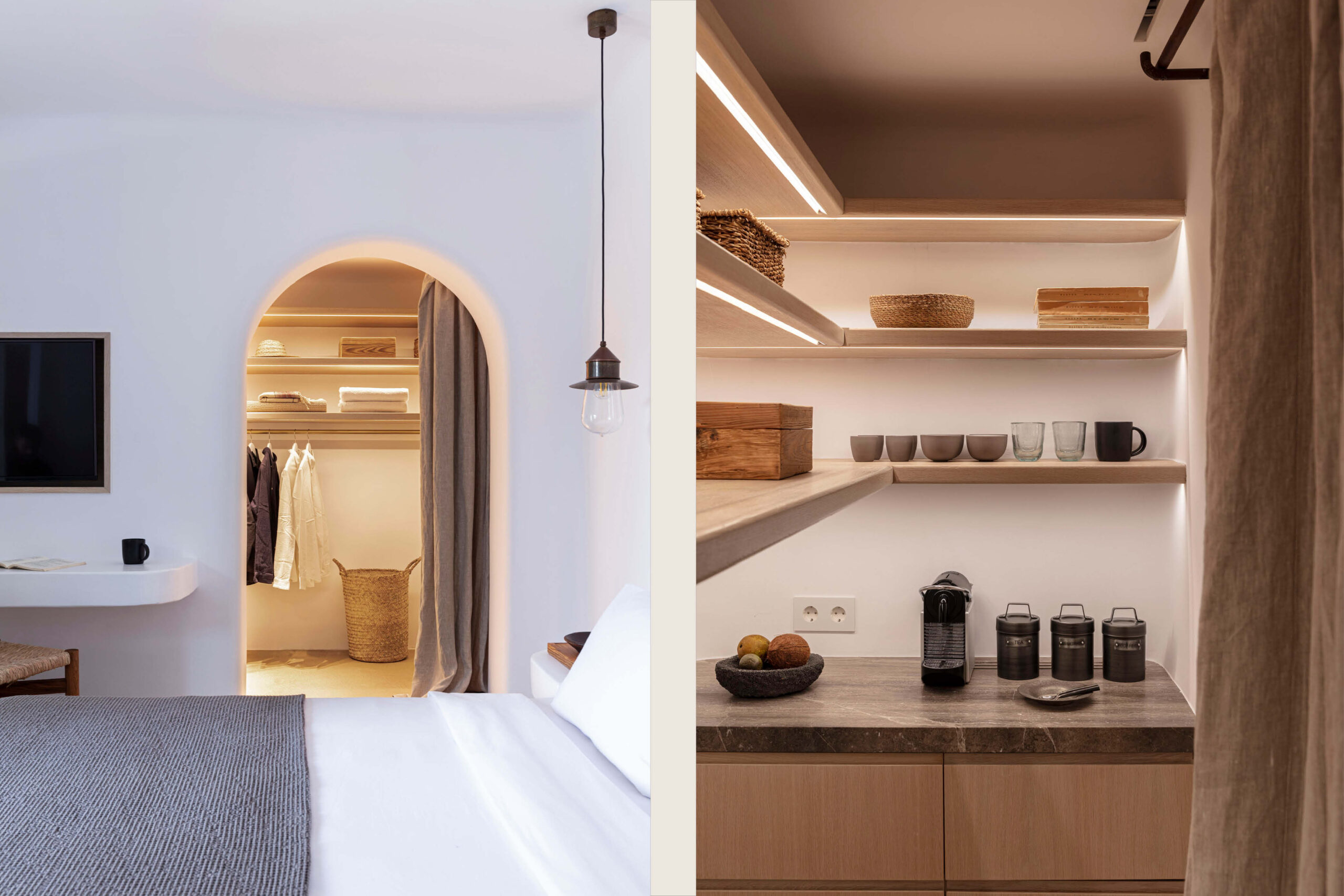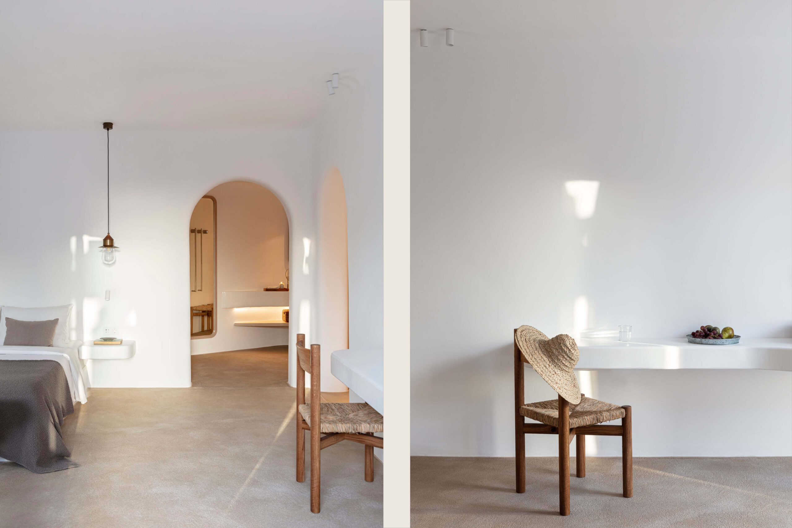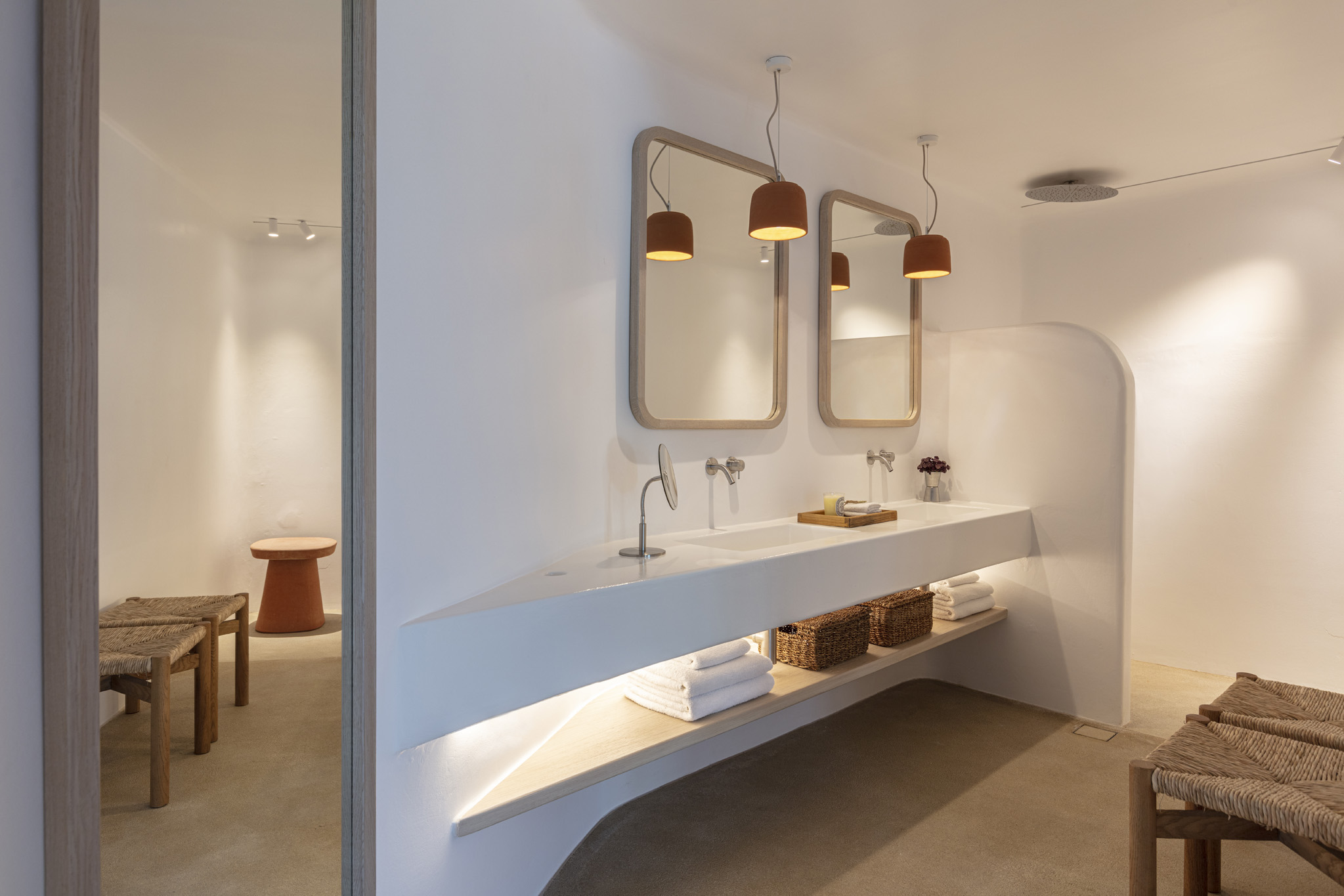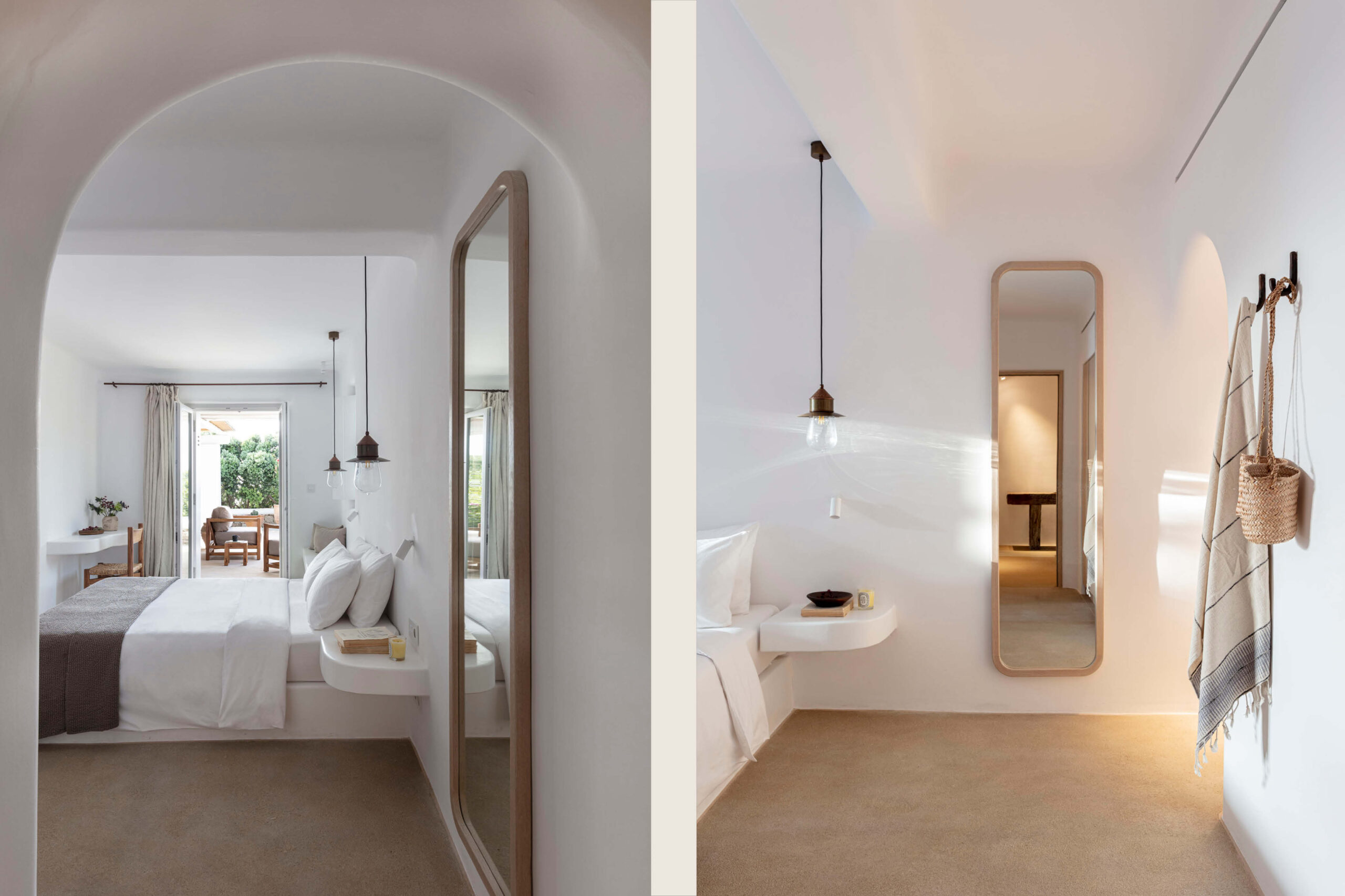 – 1 master double bedroom, en-suite bathroom, double sinks, private shaded terrace, sea&sunset views overlooking Delos & Rhenia islands
